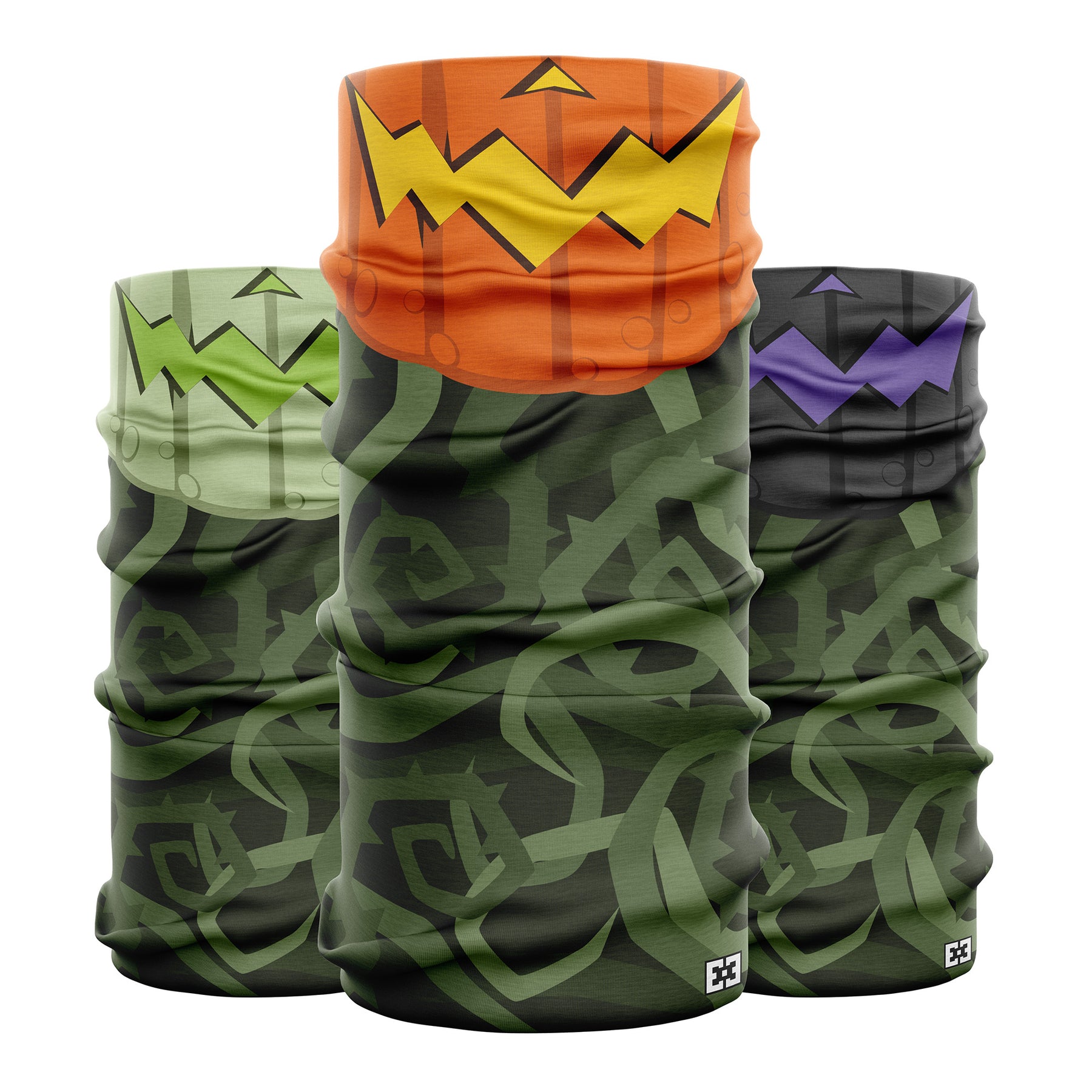 Turn heads this Halloween with the Jack O’ Lantern Neck Gaiter—an instant costume and a bold seasonal accessory all in one. Designed to mimic a carved pumpkin face, complete with jagged yellow grin and leafy vine details, this gaiter brings the spirit of spooky season wherever you go.