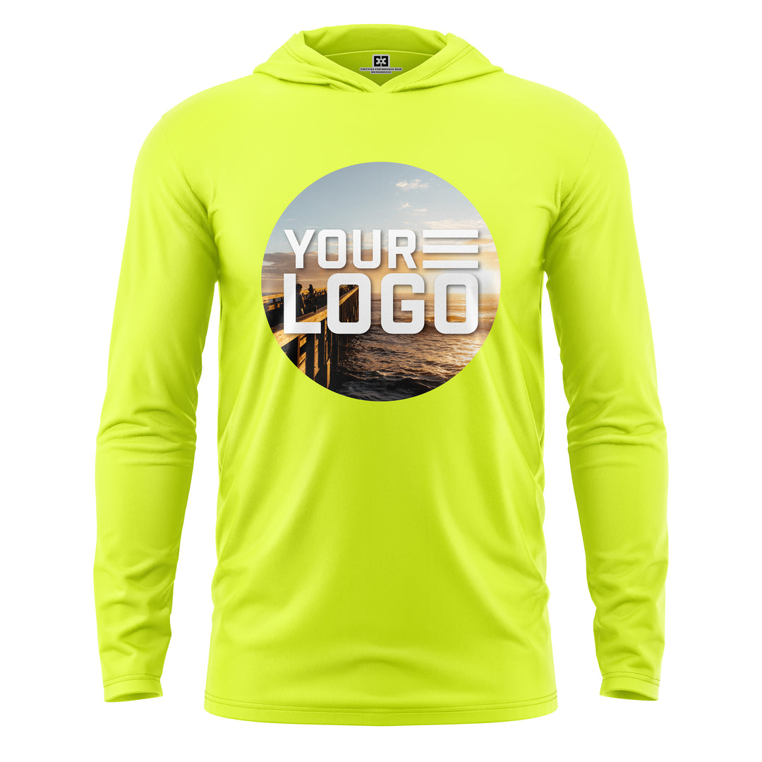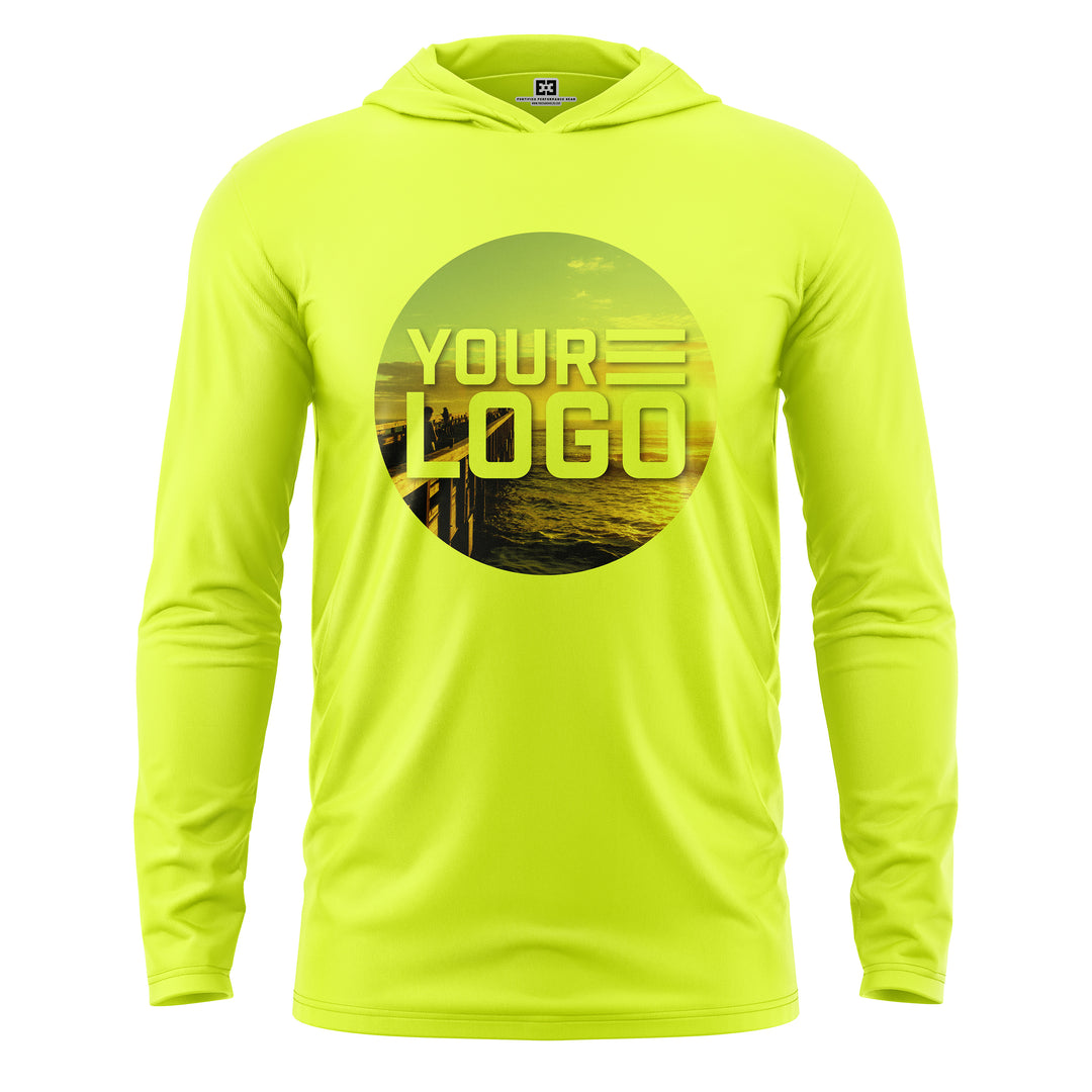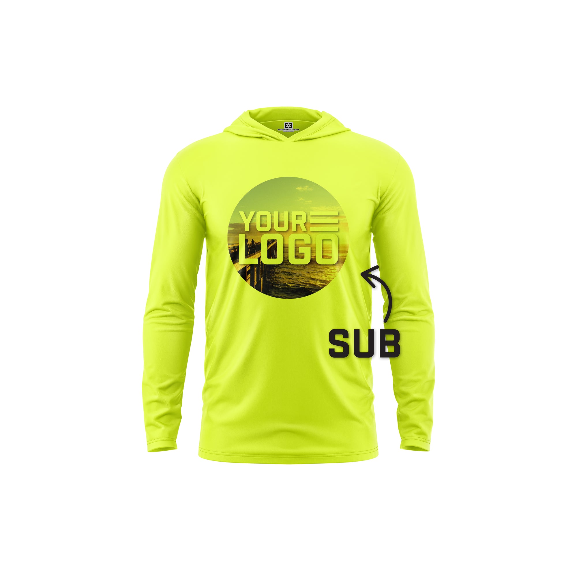Sublimation printing works best on white or very light-colored polyester shirts because the process does not use white ink—any “white” in the design is simply the color of the shirt showing through. Dark or richly colored shirts can’t achieve accurate or vibrant results, as the shirt’s base color will affect and mute the printed colors. At Free Sunshields, we offer up to 16 shirt colors for sublimation printing, depending on the shirt style, but the best results are always on lighter shades.
