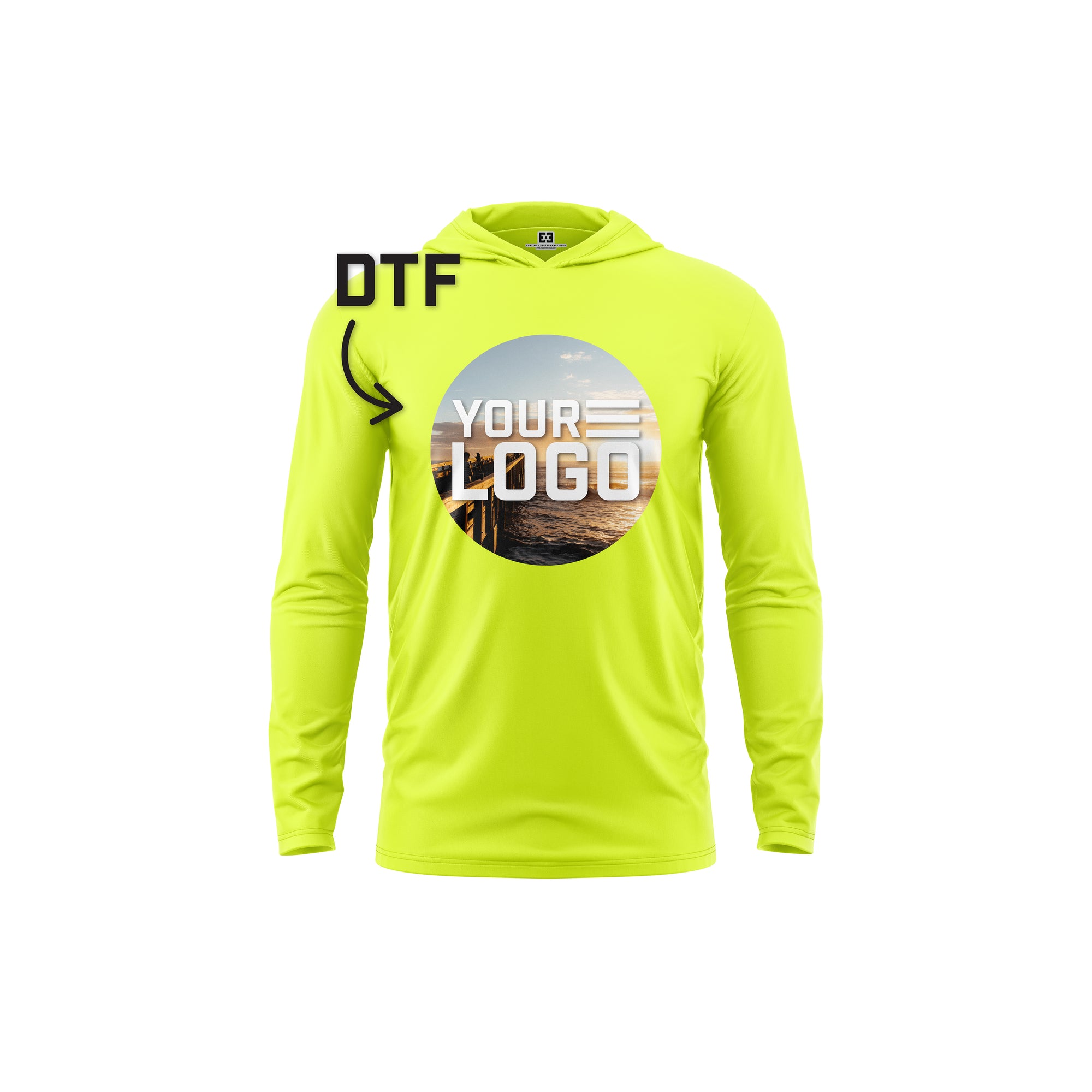 - Neon/fluorescent colors may not appear as bright. Ask us about blank-light DTF for your fluorescent design needs.